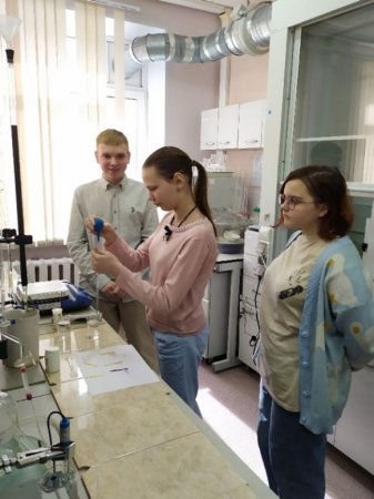 Кроме того, участники экскурсии познакомились с титриметрическим методом определения растворенного кислорода в воде, выполнили отдельные этапы титрования и вместе со специалистами разобрали химический смысл процессов, происходящих в пробе в ходе анализа.